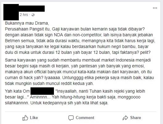 Selanjutnya, Mawar menekankan, “sama karyawan yang sudah membamntu membuat market Indonesia menjadi besar begini saja masih di kerjain, yah pantesan yah banyak yang emosi, makanya akun official banyak muncul kata-kata makian dari karyawan, oh itu cuman di hack yah? Iyaaaaa. Untungggg etika pekerja saya masih baik, kalau tidak mungkin sudah muncul reddit kedua yah.”