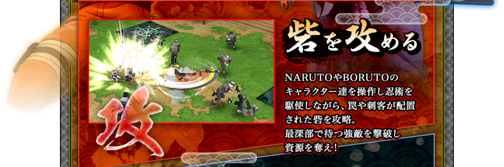 Berdasarkan informasi tersebut, Naruto x Boruto: Borutage merupakan game Fortress action ninja Battle, Pemain akan membangun sebuah benteng dan menyiapkan strategi pertahanan dengan memasang jebakan dan menempatkan Ninja di posisi bertahan.