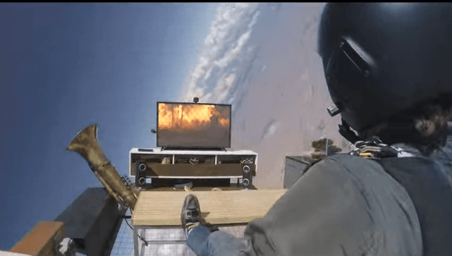 Namun, permainan selesai ketika satu set perabotan ruang tamu tempat dia bermain game jatuh ketanah. Tidak mungkin kan kalau iklan tersebut menampilkan Video yang melawan ketentuan gravitasi bumi. setalah jatuh apa yang terjadi? ternyata Jeff sudah duluan melepas parasutnya lalu disusul dengan Kucing nya yang menggunakan parasut berbeda.