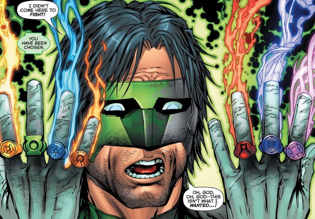 tapi kekuatan yang sangat besar itu tak mampu di tampung oleh tubuh kyle sehingga menyebabkan dia terluka. setelah mendapat penjelasan dari Ganthet bahwa cincin itu memilih kyle karena ia memiliki seluruh emosi dari berbagai cincin di dalam dirinya.