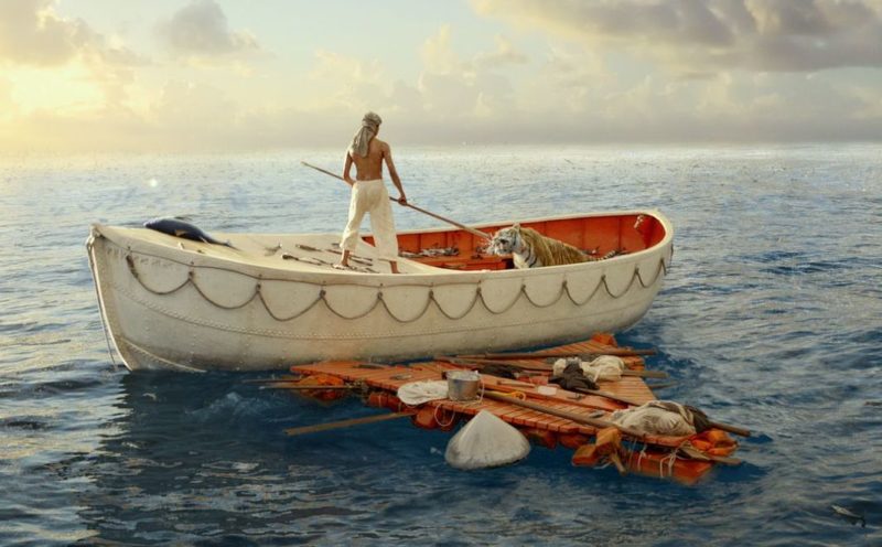 Mereka menaiki kapal kargo Jepang dengan hewan-hewan dan tiba-tiba, ada badai, diikuti oleh kapal karam. Pi bertahan di sekoci dengan zebra, orangutan, hyena dan harimau Bengal jantan yang dijuluki Richard Parker. Mereka terapung-apung di Samudera Pasifik, dengan hyena agresif dan Richard Parker mulai lapar. Pi harus menemukan cara untuk bertahan hidup.