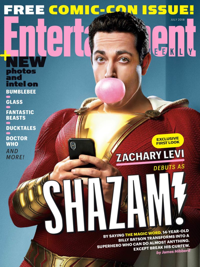 Entertainment Weekly telah mengucapkan kata ajaib dan memanggil Shazam yang diperankan oleh Zachary Levi, ke sampul Comic-Con International: San Diego 2018.