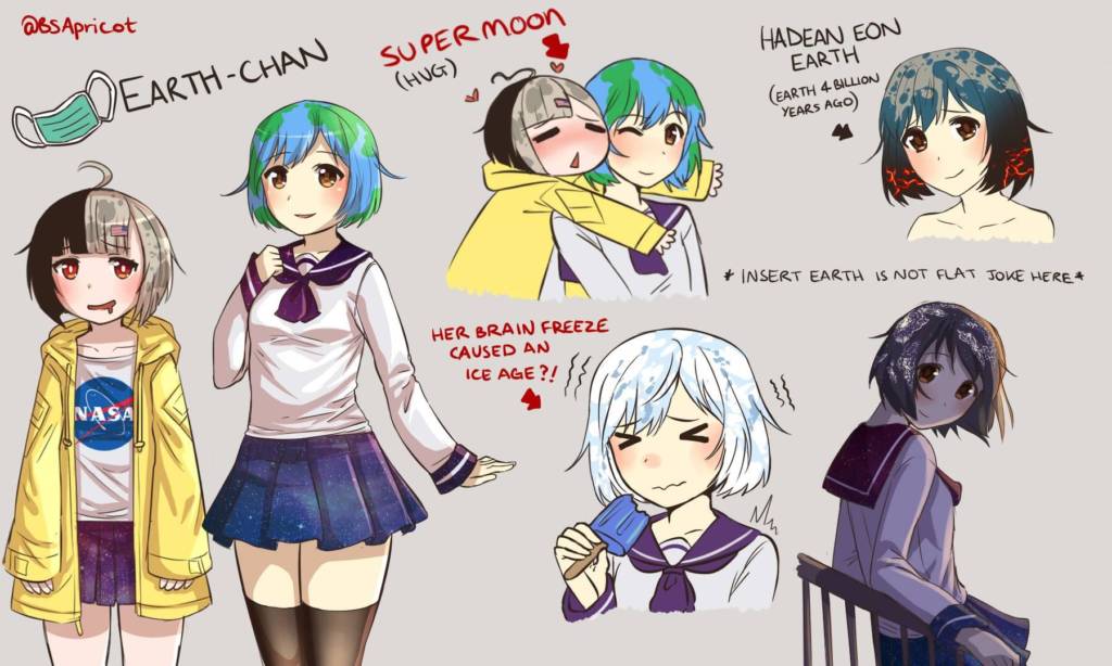 Dafunda Otaku – Sebelumnya kami sudah membagikan kalian sedikit pengetahuan tentang sosok earth-chan (Baca: Siapa Earth-chan dan Asalnya ). Kepopuleran Earth-chan menjadikannya inpirasi untuk karakter-karakter Representasi tata surya lain.