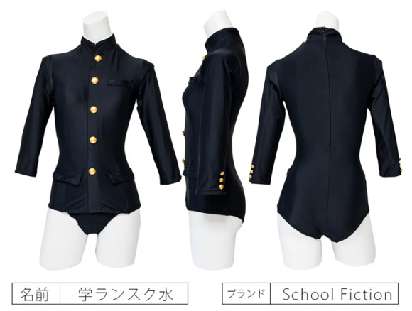 Perusahaan yang mempunya ide eksintrik ini adalah School Fiction, mereka lah yang membuat baju renang berdasarkan gakuran (sebutan baju Sekolah Pria tradisional Jepang). Bedanya baju renang ini hanya meniru tampilannya saja dan tidak mengesampingkan keutamaan baju renang, yaitu mudah di gunakan dan nyaman dipakai berenang.
