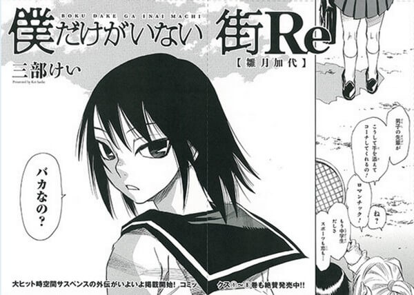 Boku dake ga Inai Machi atau lebih di kenal sebagai BokuMachi mendapatkan Manga Spin-off yang baru saja dirilis beberapa hari yang lalu.Manga Spin-off BokuMachi ini menceritakan tentang Kayo saat di bangku SMP, berikut sampul depan manga Spin-off pertamanya: