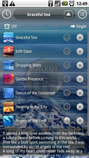 Aplikasi Music Therapy for Sound Sleep dengan konsep yang cukup sederhana memanfaatkan alpha waves untuk membantu para penderita yang kurang tidur. Jadi dengan aplikasi ini kamu akan dibawa rileks sembari memejamkan mata dan fokus mendengarkan audio yang sudah disediakan di dalam aplikasi tersebut.