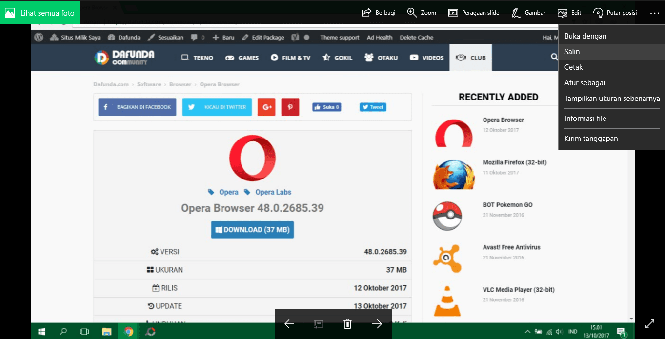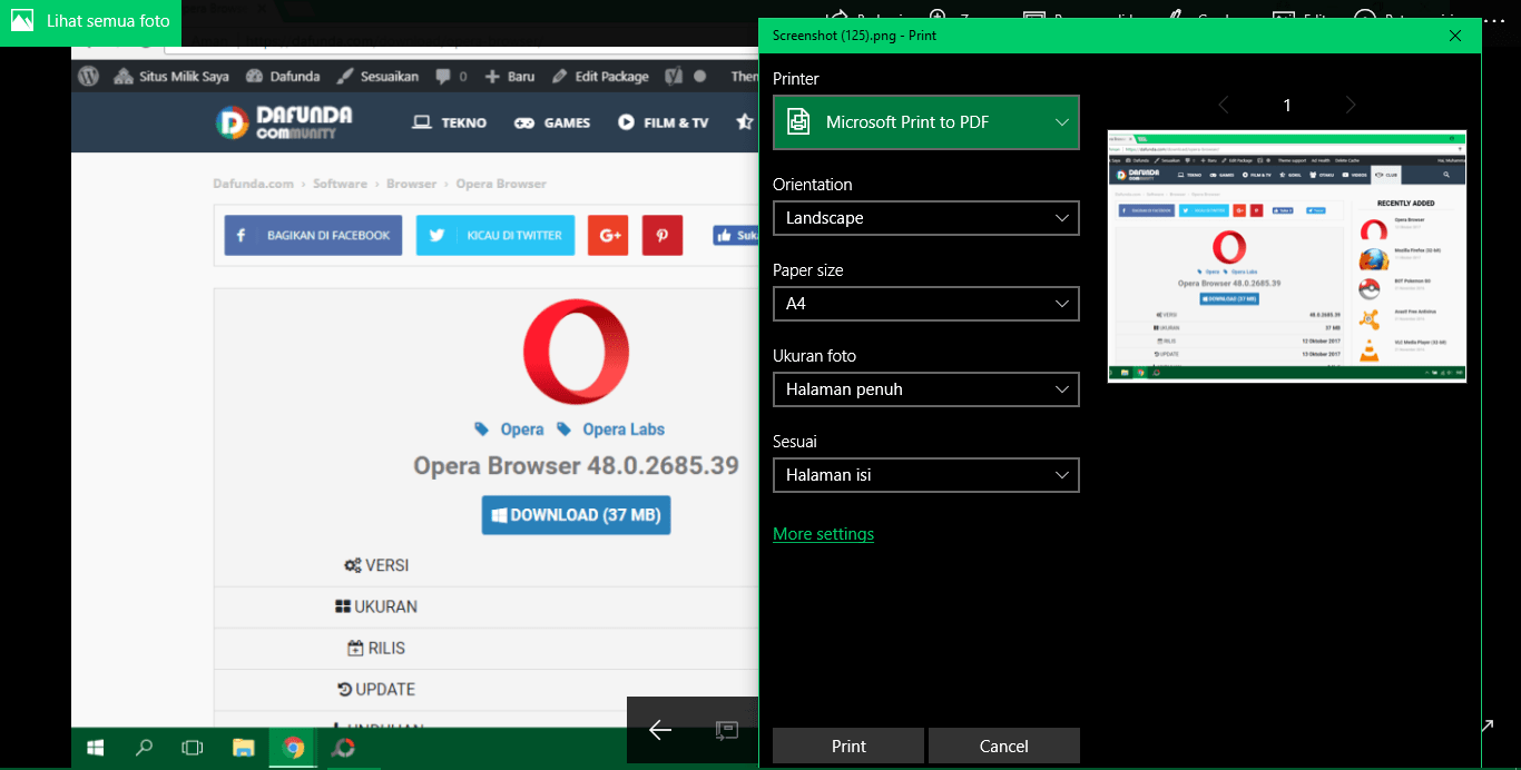- Jika sudah ada gambarnya sekarang pilih opsi untuk melakukan Cetak Dafunda Tekno. Karena Windows 10 menggunakan Bahasa Indonesia, jika kamu setelan OS inggris, maka pilih opsi untuk Print.