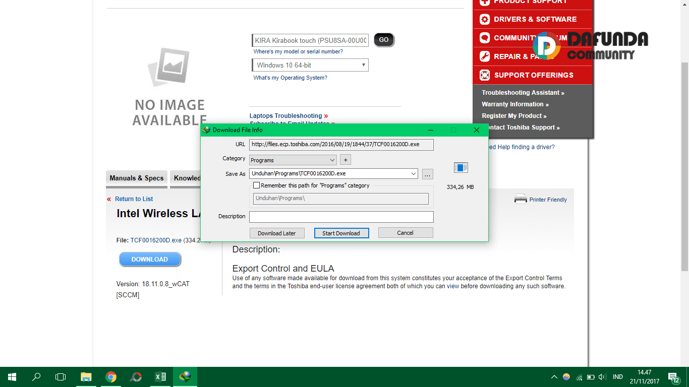 - Koneksi Internet sangat dibutuhkan disaat Mendownload Driver Toshiba