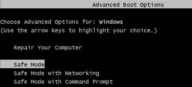 - Hidupkan kembali laptop kemudian tekan F8 beberapa kali hingga muncul laman Advanced Boot Options. Lalu pilih Safe mode.
