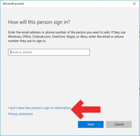 - Kemudian klik “I don’t have this person’s sign-in information“