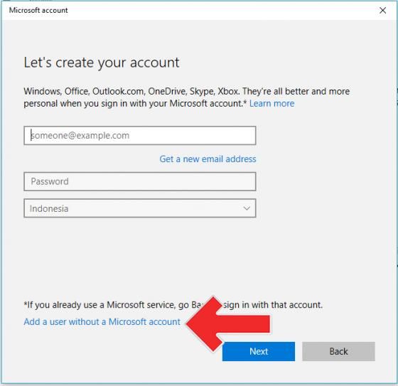 - Sekarang klik “Add a user without a Microsoft account“