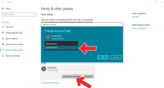 - Nah, sekarang klik “Change account type” lalu ubah menjadi Administrator