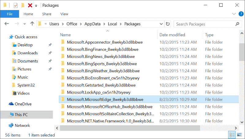 - Cari folder dengan format nama Microsoft.MicrosoftEdge_8wekyb3d8bbwe, jika sudah ketemu, maka hapus dan akan ada dialog sebagai konfirmasi. Lalu klik Yes.