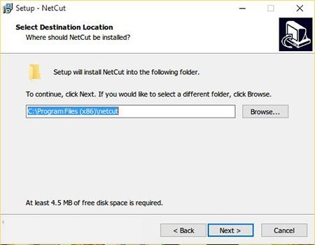 - Silahkan pilih tempat installasi Netcut, kemudian klik Next.