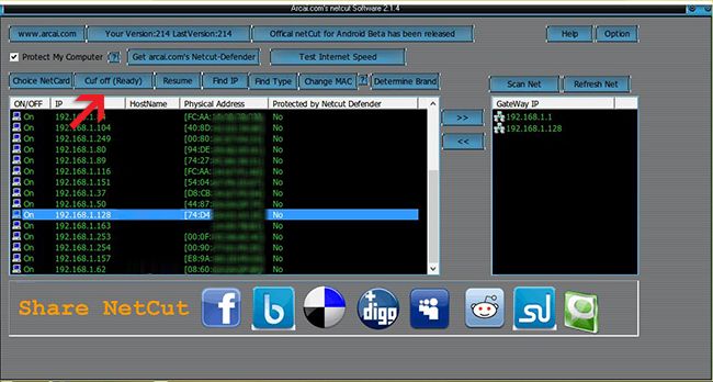Nah, untuk memutuskan koneksi internet orang lain, pilih IP Address nya kemudian klik Cut off (Ready). Untuk mengembalikan koneksinya kamu tinggal pilih menu Resume.