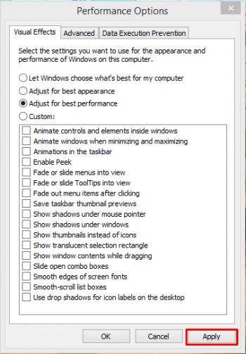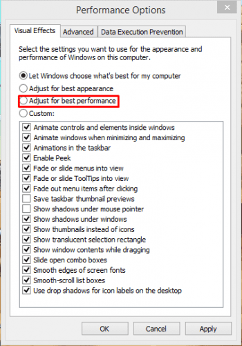 Kemudian menuju ke Tab Visual Effect dan centang Adjust for Best Performance. Lalu klik Apply.
