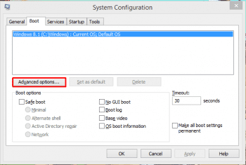 - Sekarang tab ke Boot lalu pilih Advanced Options.