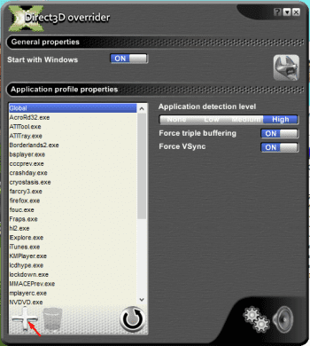 - Pertama buka aplikasi D3DOverrider, kemudian pilih gambar berbentuk plus seperti gambar dibawah ini.