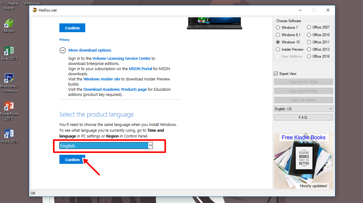 Pilih Confirm, selanjutnya pilih bahasa utama Windows 10 yang ingin kamu terapkan. Disini Dafunda Tekno akan mengunduh Windows 10 versi Bahasa Inggris Lalu Confirm Lagi.