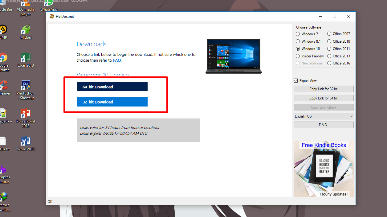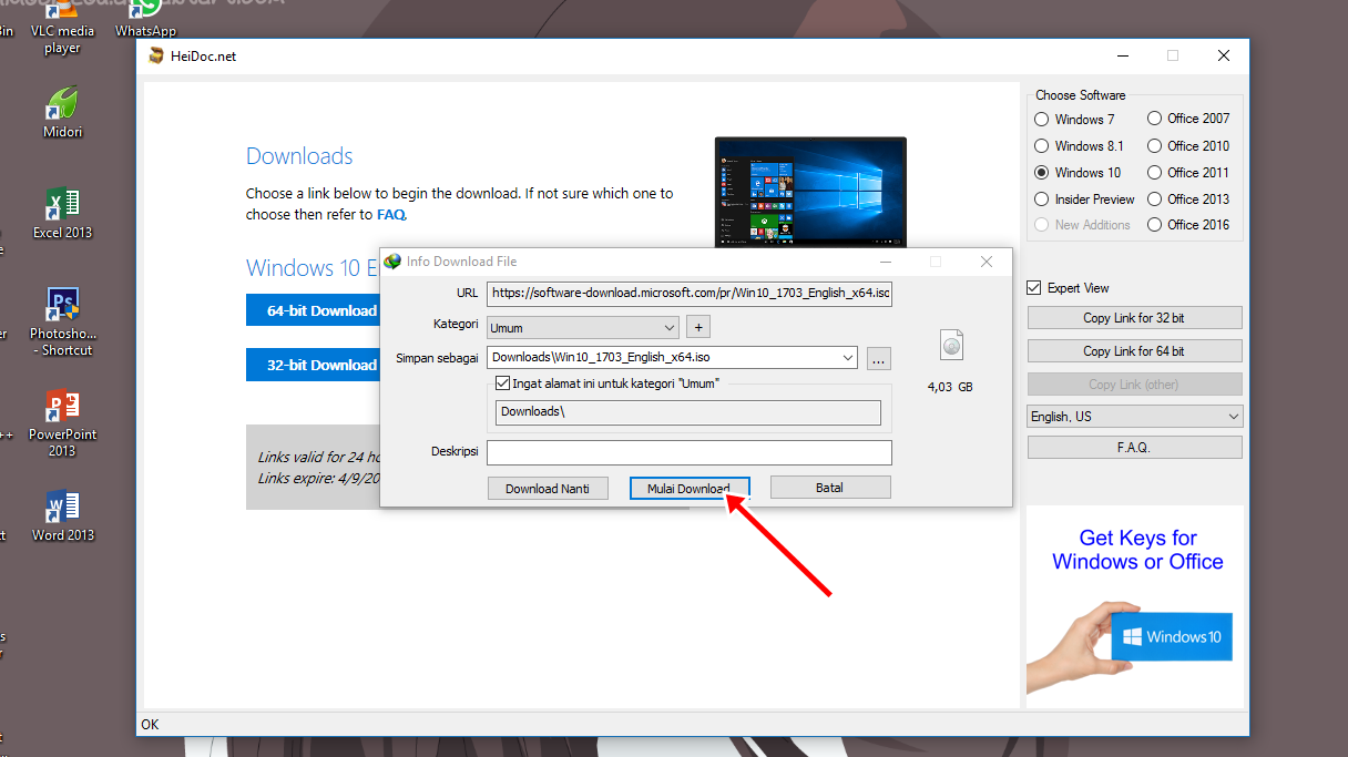 Link Download Microsoft Windows 10 versi 64-bit dan Windows 10 versi 32-bit siap kamu unduh. klik salah satu untuk mengunduh langsung atau pilih Copy Link for 32-bit / 64-bit yang tersedia di bagian kanan untuk mendapatkan URL nya.