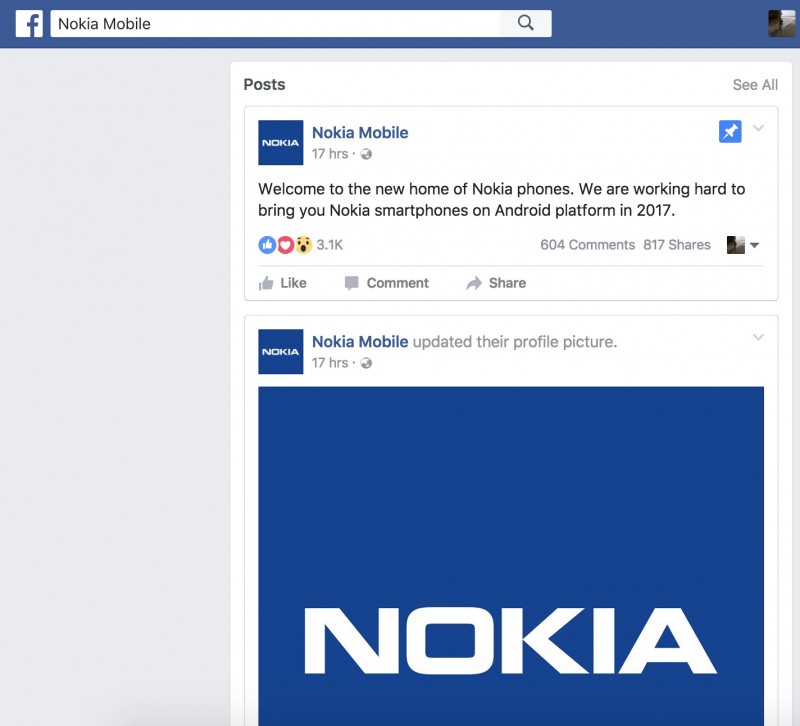 Selain halaman resmi website Nokia, Ternyata di Facebook Nokia juga mengaktifkan kembali fanspage Nokia Mobile. Didalam fanspage tersebut berisikan pernyataan mereka tengah bekerja keras dalam pengembangan platform berbasis Nokia di tahun 2017 mendatang.