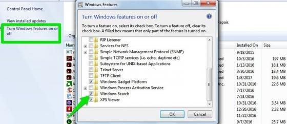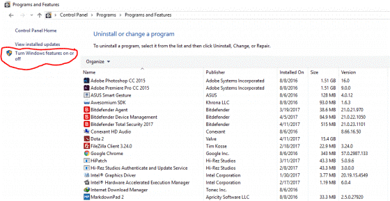 Arahkan kursor kamu kebagian kiri kemudian klik “Turn Windows features on or off”.