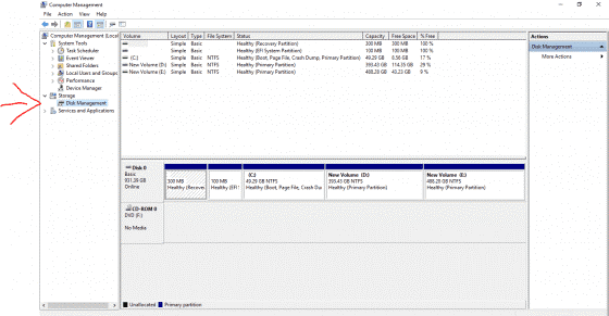 - Sekarang ketikan compmgmt.msc guna membuka “Computer Management” kemudian klik “Disk Management” untuk melihat segala drive di laptop kamu.