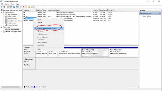 Pilih salah satu drive, dimana tempat data kamu hilang. Misalnya di Drive D kemudian klik “Change Drive Letter and Paths”.