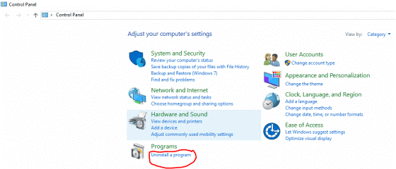 - Kemudian klik “Uninstall a program” yang berada di bawah menu “program”.
