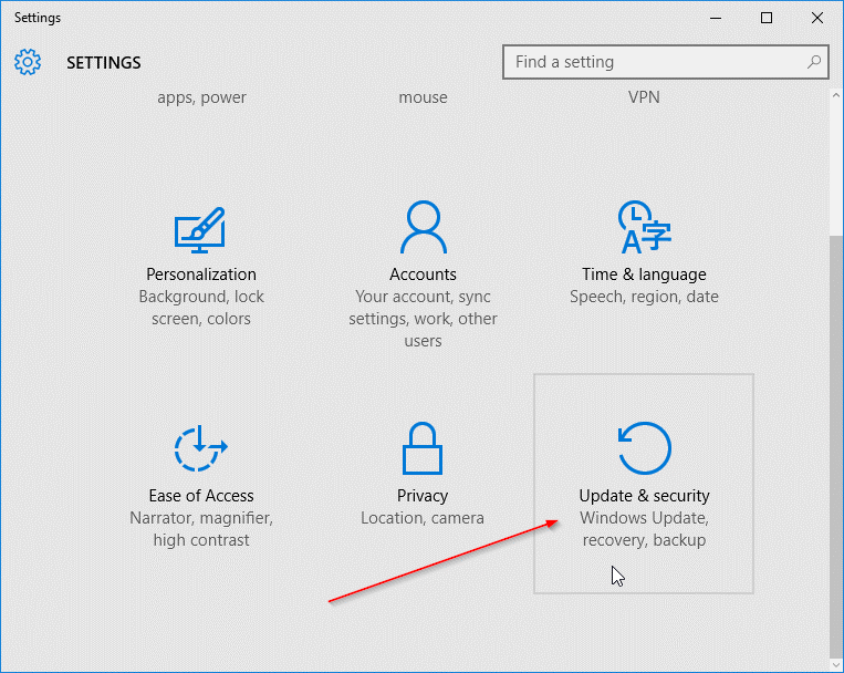 - Sekarang klik Update and Security (Windows Update, recovery, backup)