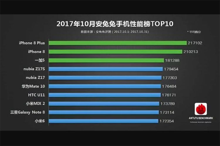 Antutu adalah situs Bechmark populer saat ini kembali memberikan daftar smartphone dengan memiliki skor tertinggi dalam durasi tertentu. Daftar tersebut berdasarkan skor yang dicatat dari masing-masing smartphone hingga Oktober 2017.