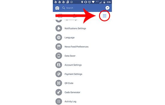 - Tap pada ikon tiga garis di bagian pojok kanan atas aplikasi Facebook