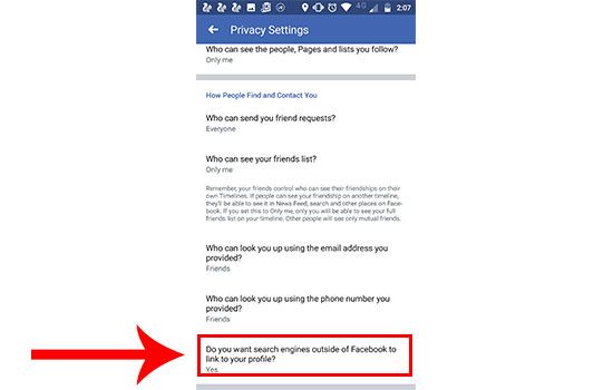 - Kemudian scroll kebawah hingga menemukan “Do you want seacrh engines outside of Facebook to link your profile?” pilihan berada paling bawah.