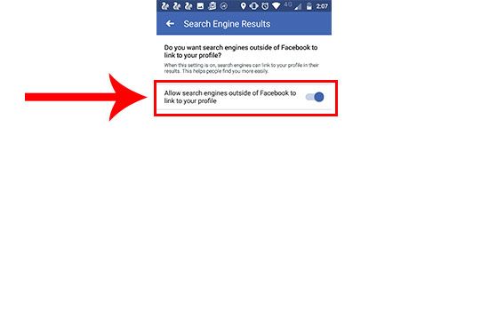 - Lalu tekan opsi “Allow search engine outside of Facebook to link to your profile” dengan menggeser toggle.