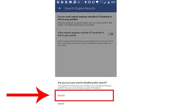 - Nanti akan ada pop-up untuk mengkonfirmasi keputusan kamu soal menonaktifkan hubungan profile kamu dengan seacrh engine. Pilih Disable jika kamu setuju.