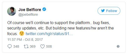 Melalui akun twitter resminya salah satu petinggi di perusahaan Microsoft, Joe Belfiore mengungkapkan bahwa untuk pembuatan fitur maupu hardware di Windows Phone bukan lagi prioritas utama.