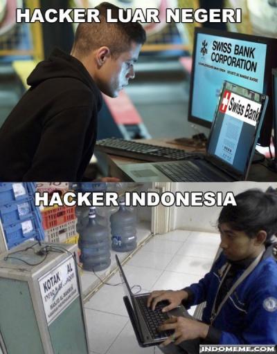 Sebenarnya Indonesia tidak kalah soal urusah peretas. Bahkan ada seorang peretas asal Indonesia yang mampu menggerakkan satelit. Sayangnya banyak orang Indonesia (terutama Bocah) yang mengaku punya kemampuan meretas padahal cuma modal Topeng saja. itu yang sangat di sayangkan.Masih kurang? nantikan Meme dari Dafunda Gokil Selanjutkan kawan