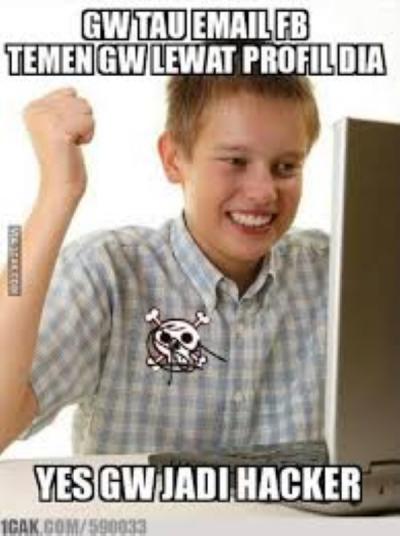 Meme ada di mana saja, dari persoalan yang ringan sampai hal genting di babat habis oleh jenis humor satu ini. Tidak terkecuali dunia hacker yang terkenal suram dan penuh jebakan. Tapi yang kita bicarakan bukan Hacker asli yang sering kamu lihat di Televisi, melainkan si Hekel yang ngakunya punya kemampuan tinggi tapi aslinya bocah.