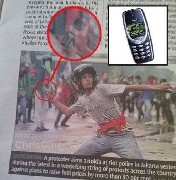 Gambar ini menjadi bukti bahwa Nokia 3310 bisa jadi senjata paling mematikan